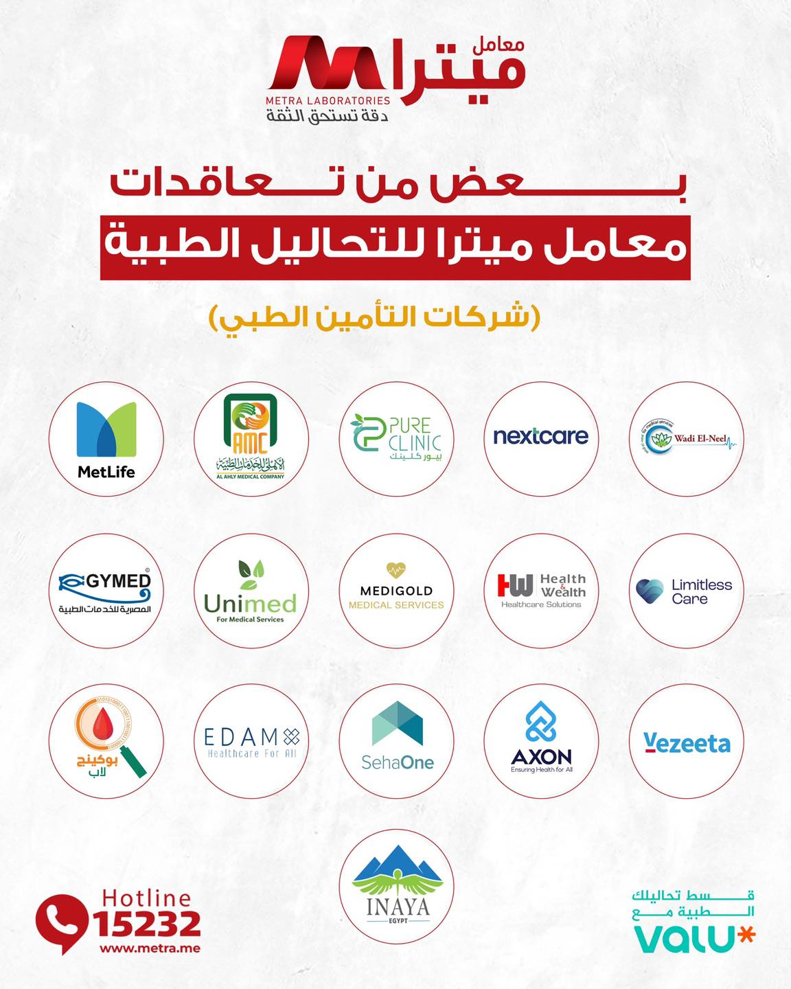 دلوقتي تقدر تستفيد من خدماتنا المتميزة من خلال تعاقداتنا مع كبرى شركات التأمين الطبي.