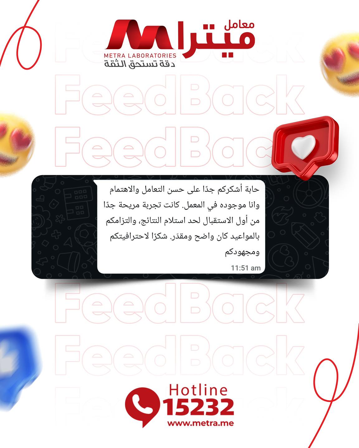18 أبريل 2026 رأيك دايماً يفرق معانا 18 أبريل 2026 أخبار وعروض المعمل رأيك يفرق معانا في معامل ميترا دايمًا بنسعى نكون عند حسن ظنك، ووجودك ورأيك هو اللي بيخلينا أحسن كل يوم لحجز خدمة سحب العينات من المنزل أو من مكان عملك، تواصل معنا الآن: الرقم الموحد: 15232 أو عبر واتساب: 01067399441 Website: https://metra.me Instagram: https://instagram.com/metra_labs #معامل_ميترا#دقة_تستحق_الثقة