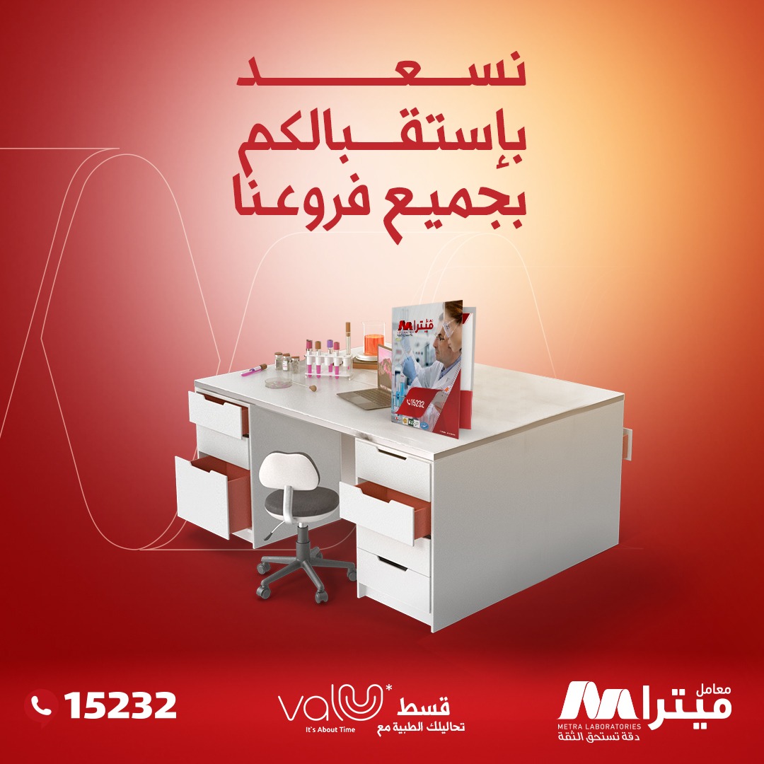 نسعد بإستقبالكم ابتداء من اليوم بجميع فروع معامل ميترا